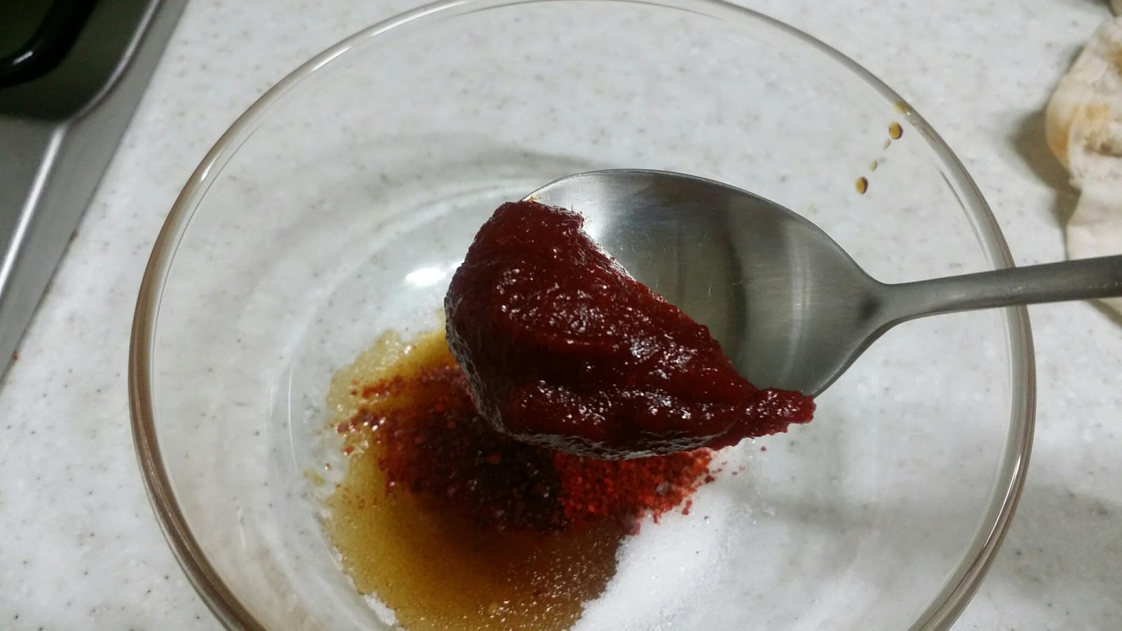韓國辣醬半匙-一匙。(辣度自行可調整。)